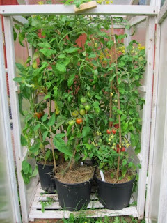 Ute börjar tomaterna mogna både i det lilla växthusskåpet och på friland. Andra tomatsorten som är klar för skörd är vackert rosaröda Whippersnapper.